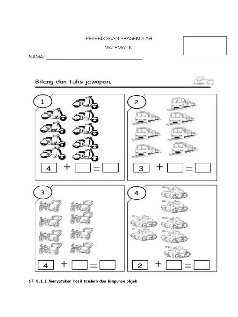 Latihan matematik tadika 6 tahun format pdf. Koleksi latih tubi soalan latihan tahun 1 hingga 6 pelbagai subjek cuti sekolah bulan . Soalan matematik operasi tambah prasekolah kebaya mude. 6 tahun lembaran kerja matematik prasekolah operasi tambah dan tolak . Latihan pra sekolah 6 tahun matematik eksperimen sains pra sekolah 6 tahun.